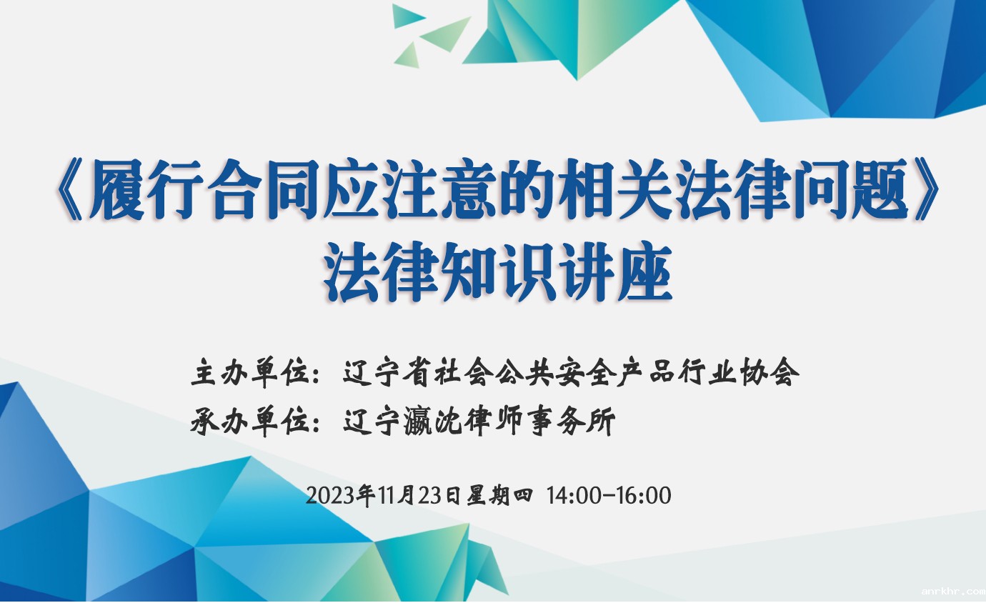为助力协会成员稳健经营,11月23日14:00-16:00,新利luck全站登录将与辽宁瀛沈律师事务所联合举办《履行合同应注意的相关法律问题》法律知识讲座,欢迎会员单位参加。