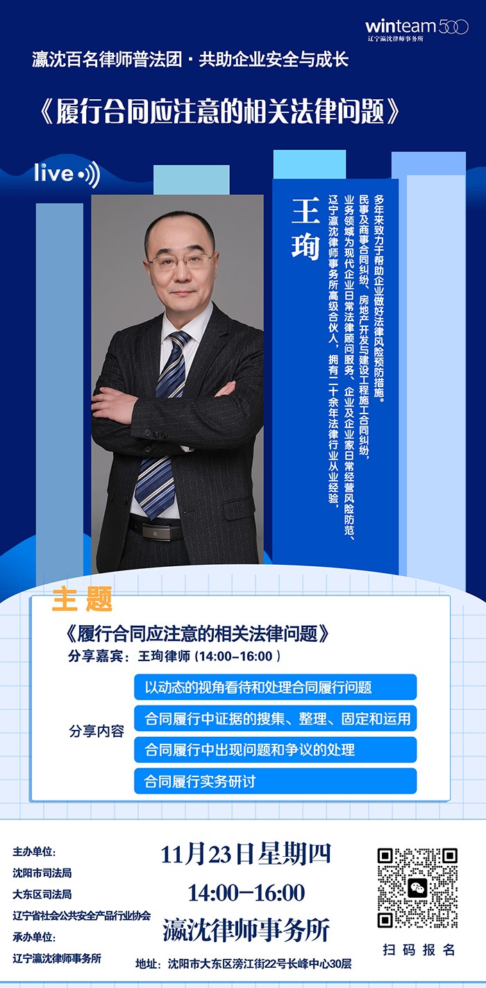 为助力协会成员稳健经营,新利luck全站登录与辽宁瀛沈律师事务所的17支专业化业务团队、上百名律师,针对企业关心的问题,特邀行业专业律师——王珣律师,为协会成员进行详细解读!