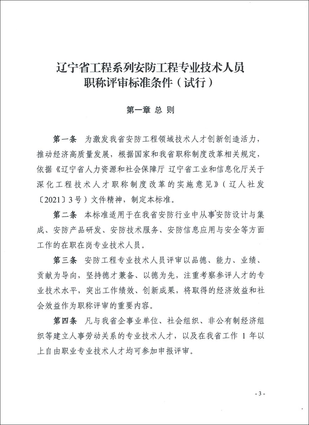 关于印发《辽宁省工程系列安防工程专业技术人员职称评审标准条件(试行)》的通知