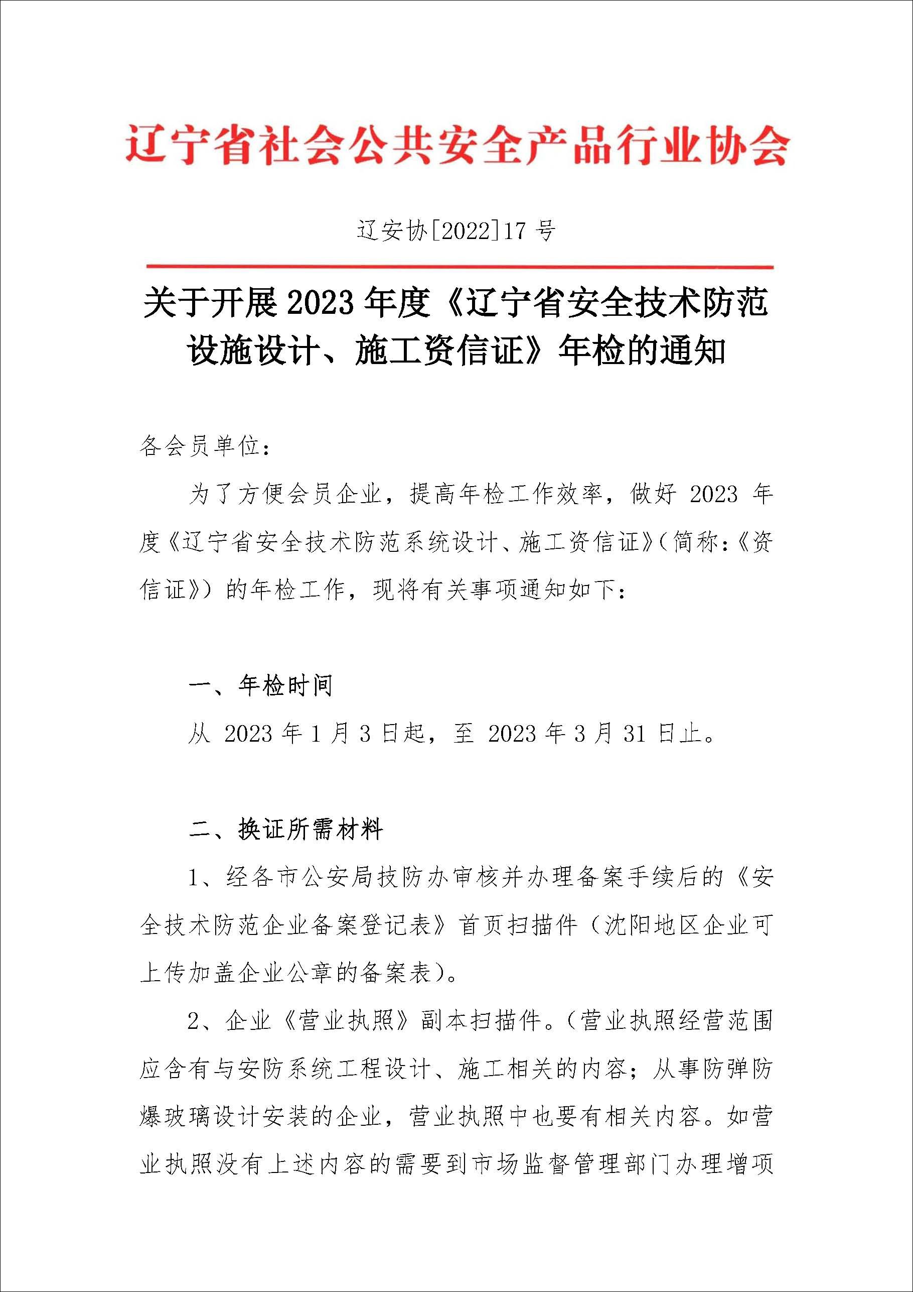 关于开展 2023 年度《辽宁省安全技术防范设施设计、施工资信证》年检的通知