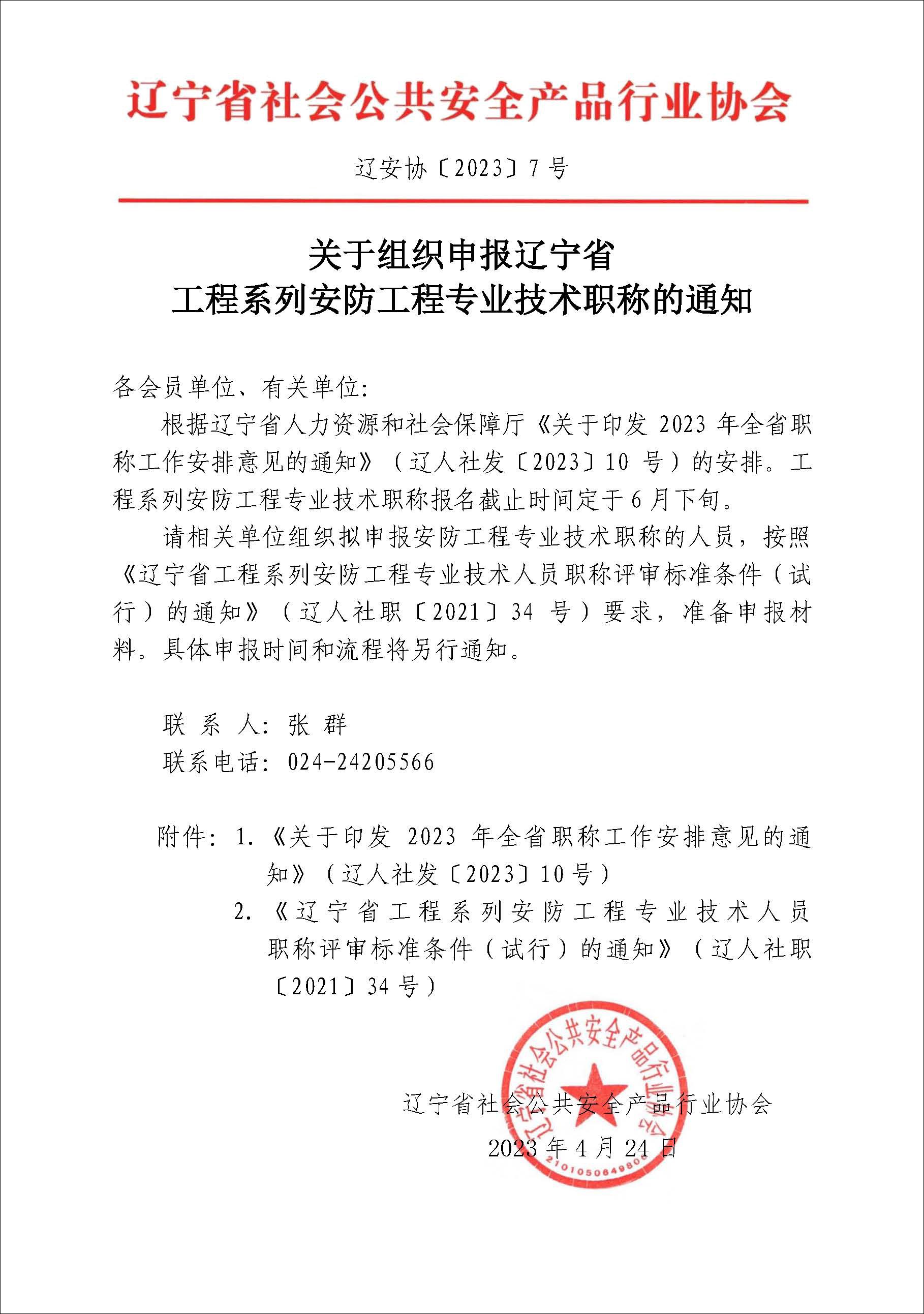 关于组织申报辽宁省工程系列安防工程专业技术职称的通知