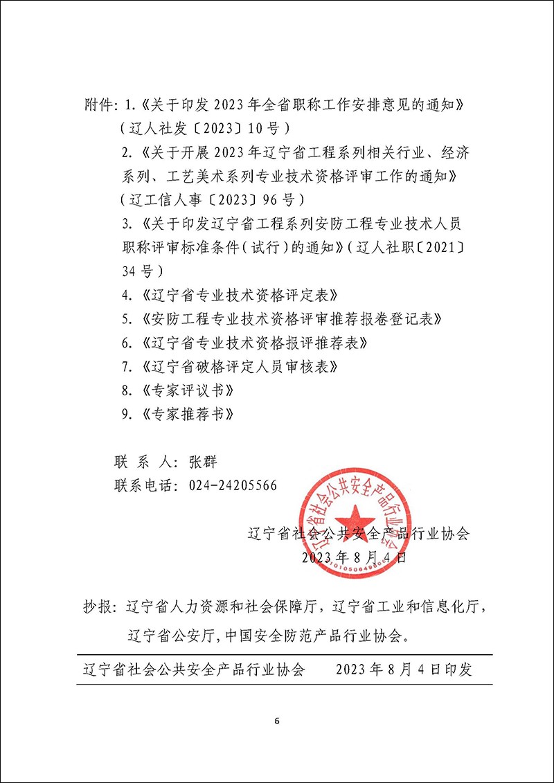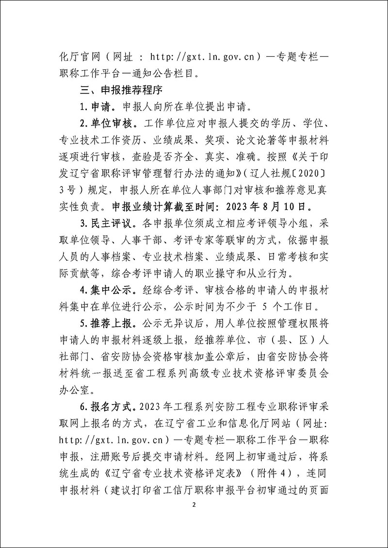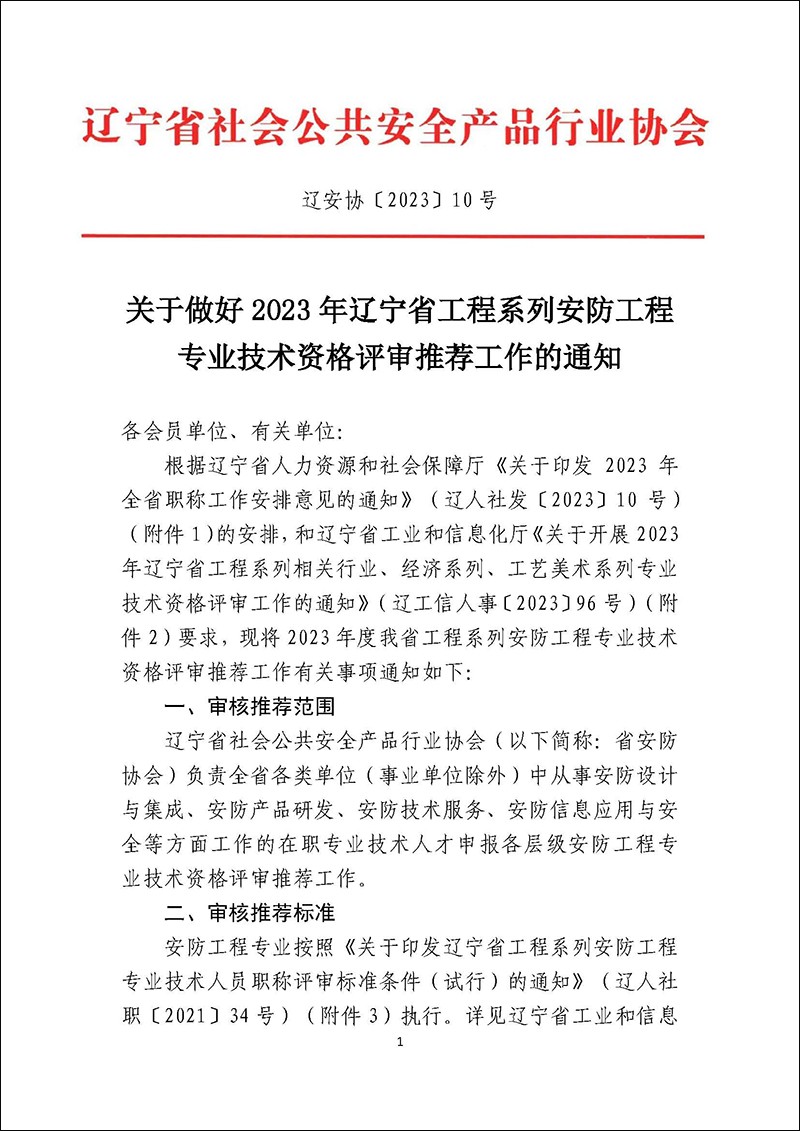 关于做好2023年辽宁省工程系列安防工程专业技术资格评审推荐工作的通知