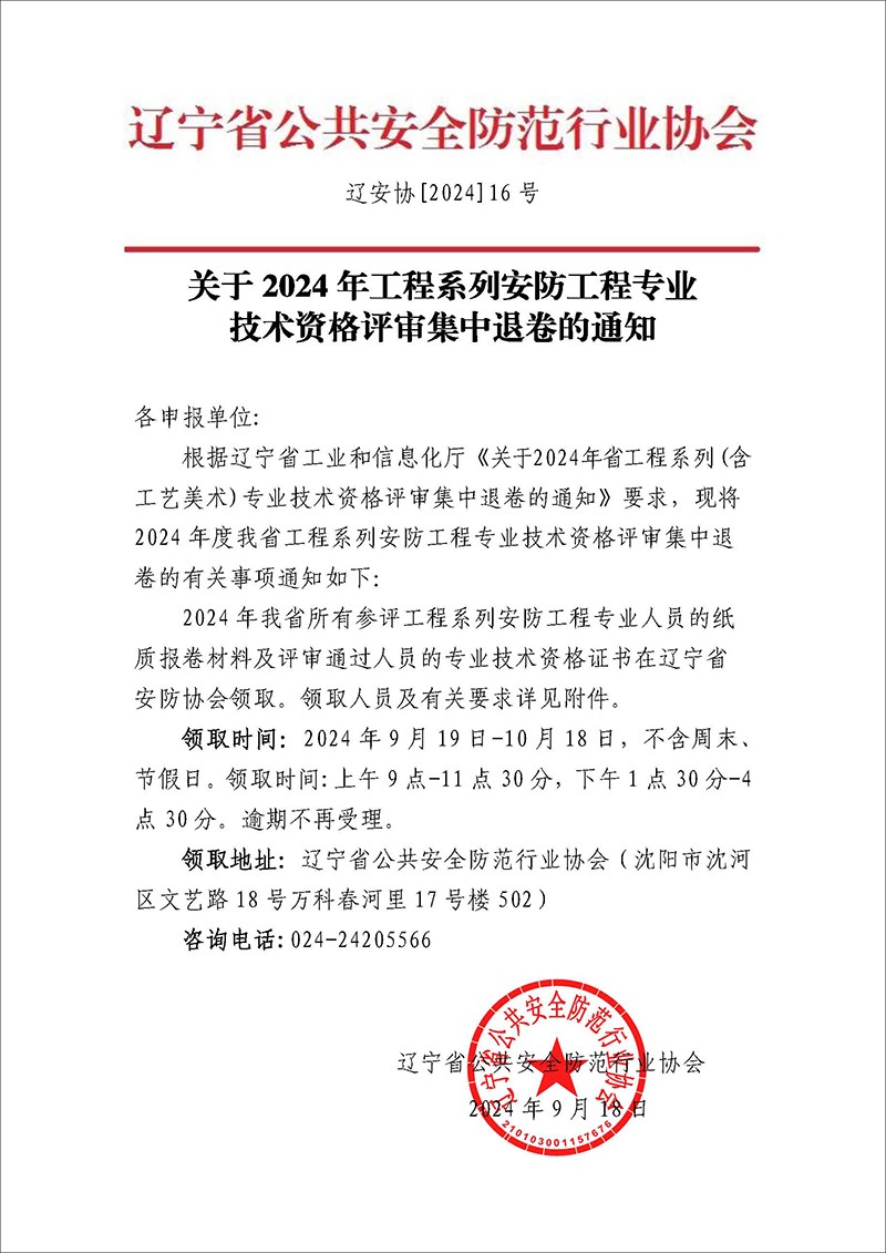 关于2024年工程系列安防工程专业技术资格评审集中退卷的通知