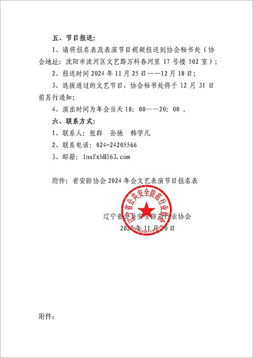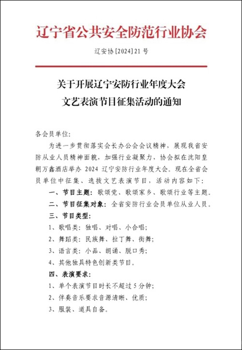 关于开展辽宁安防行业年度大会文艺表演节目征集活动的通知