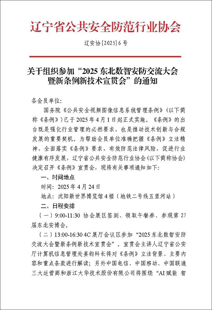 关于组织参加“2025 东北数智安防交流大会暨新条例新技术宣贯会”的通知