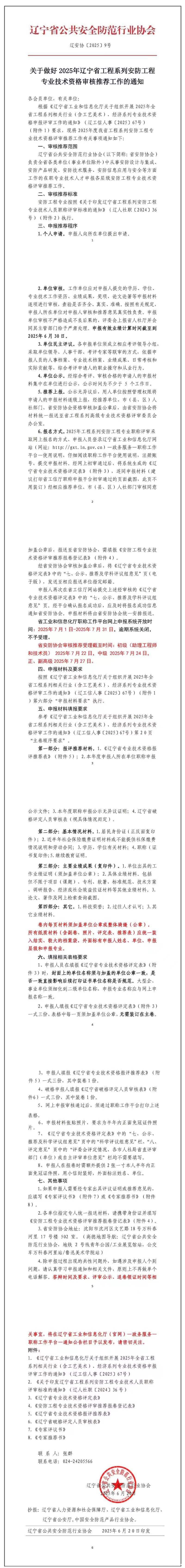 关于做好2025年辽宁省工程系列安防工程专业技术资格审核推荐工作的通知