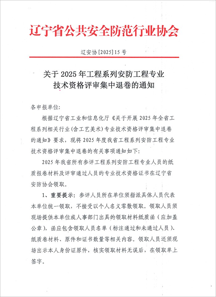 关于2025年工程系列安防工程专业技术资格评审集中退卷的通知