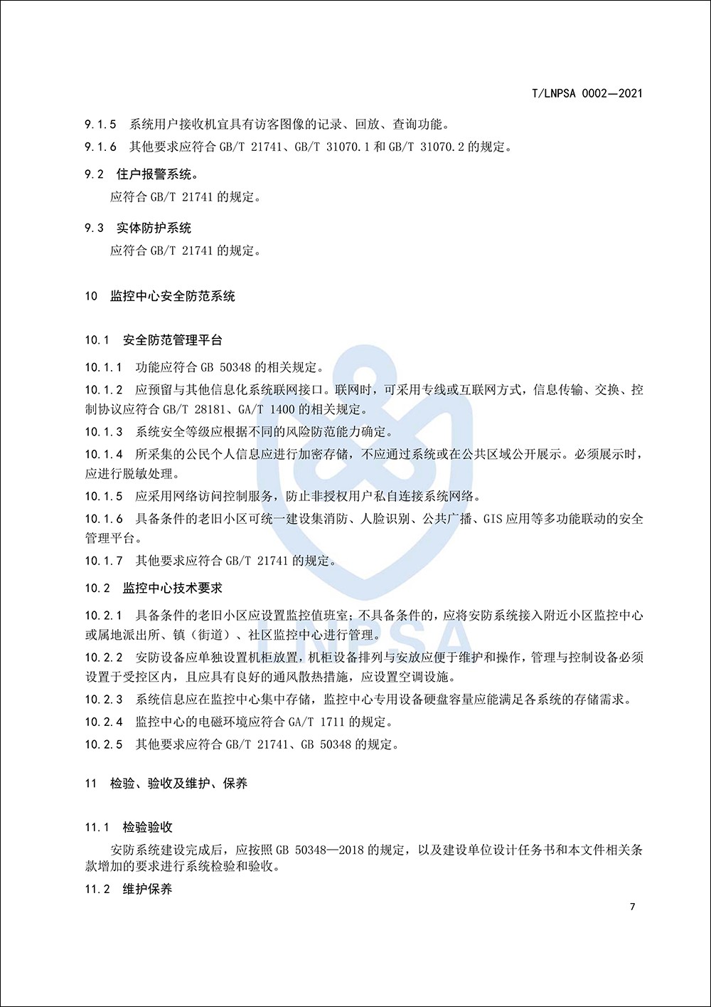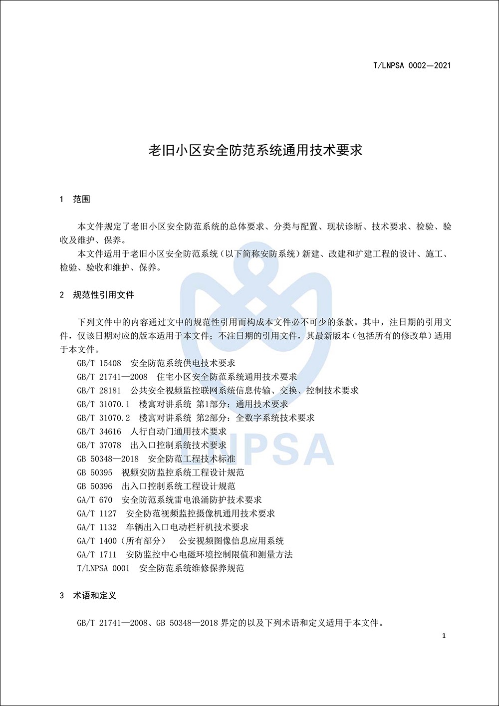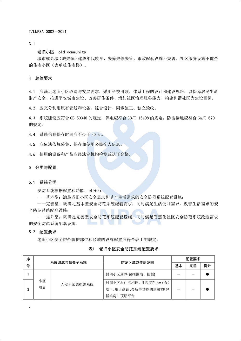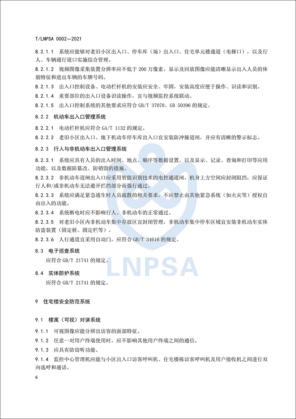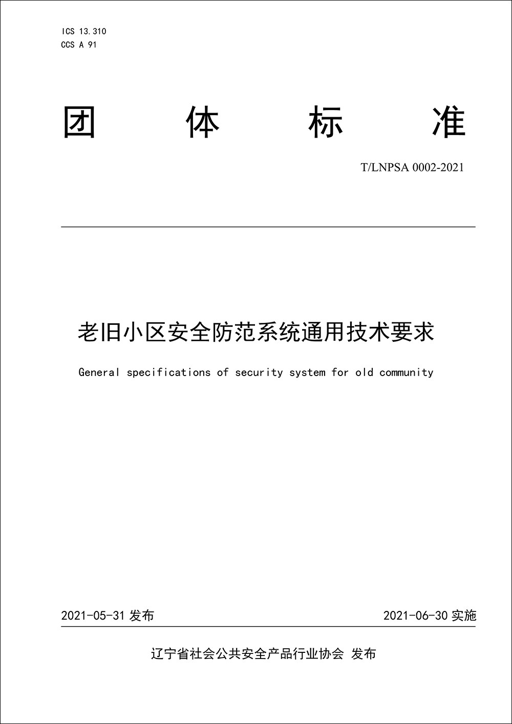 辽宁省社会公共安全产品行业协会老旧小区安全防范系统通用技术要求