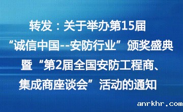 关于举办第15届“诚信中国--安防行业”颁奖盛典暨“第2届全国安防工程商、集成商座谈会”活动的通知