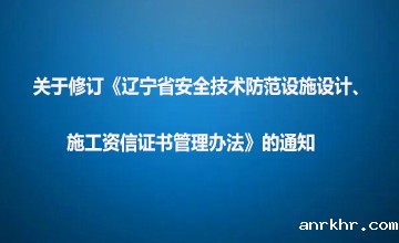 关于修订《辽宁省安全技术防范设施设计、施工资信证书管理办法》的通知